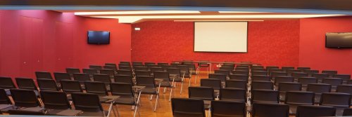 Le sale sono insonorizzate e complete di impianto audio, schermo per videoproiezione, videoproiettore, lavagna a fogli.