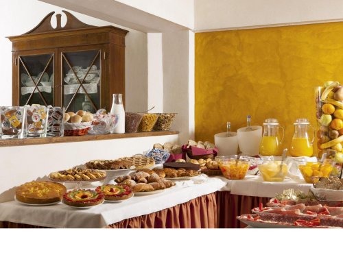 La struttura dispone di una sala colazioni completamente circondata da luminose vetrate che si aprono verso l'esterno con possibilità, durante i mesi più caldi, di gustare la colazione direttamente nel parco.