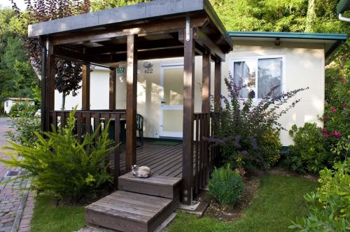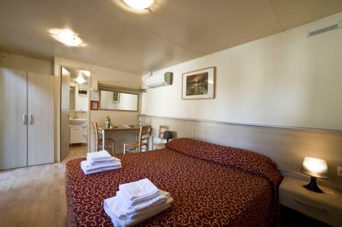 Bilocale para 2-3-4 pessoas, de 24 m², com 1 quarto de casal com camas individuais, banheiro privativo com ducha ou banheira, sala, minicozinha aparelhada, sofá-cama de casal, TV em cores com canais via satélite, ar condicionado/aquecimento, minibar e pátio com decoração de jardim e espreguiçadeiras.