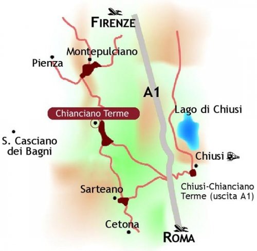 From the Sole A1 motorway, exit at Chiusi - Chianciano Terme.