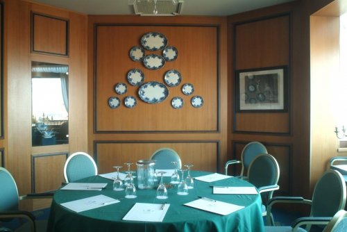 The hotel has a luminous room with a terrace and a lovely panoramic view of the centre of Piacenza, with movable soundproof walls made of lead slabs, making any type of arrangement possible.