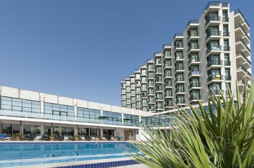 Guests have access to extensive common areas, a welcoming restaurant, two bars (one in the lobby and one next to the swimming pool), a multi-purpose field for tennis and football, a private beach and fenced in private parking.