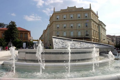 From Genoa Cristoforo Colombo International Airport, take the A10 Genova – Ventimiglia motorway towards Ventimiglia; then take the A7 Genova – Milano motorway, leaving at the Ovada exit after about 30km. Turn right and follow the signs for Acqui Terme (go through the towns of Molare and Cremolino): after about 23km enter the city and turn right at the traffic circle onto Corso Bagni. Drive along this road for around 2km, go under the railway bridge and turn left at the second traffic circle, continuing along Corso Bagni. Drive alongside the hotel and continue for around 800 metres until reaching Piazza Italia.