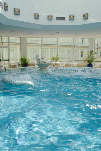 The hotel has 142 rooms, a bar, a restaurant, a conference centre, a beauty centre with a spa pool, 2 saunas, Turkish baths, a solarium and 7 rooms for beauty treatments and massages.