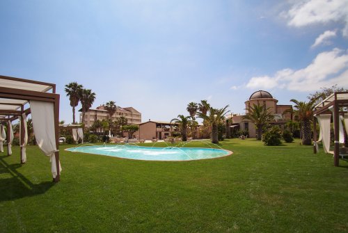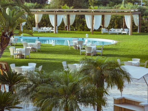 La grande spiaggia di sabbia e ghiaia detta “La Perla dello Ionio, attrezzata e riservata, si apre ai piedi della struttura con uno dei mari più belli e puliti d'Italia.