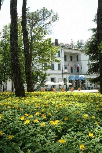 The Grand Hotel Terme is a refined historic Art Nouveau residence built in 1870 in a Park of the Terme di Riolo thermal baths.