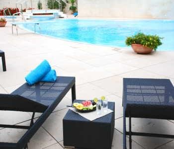 O prestigioso Pool Club ao ar livre tem piscina com hidromassagem, com espaço de pouca profundidade para as crianças, espreguiçadeiras funcionais e confortáveis e áreas de sombra para proteger-se durante as horas mais quentes do dia.