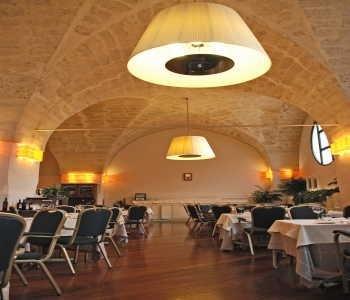 O restaurante Michelangelo, com altas abóbadas de arestas, é o lugar perfeito para saborear os pratos da cozinha nacional e as mais famosas receitas do Salento.