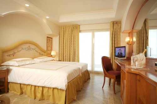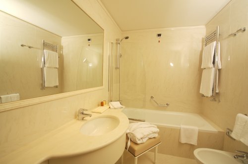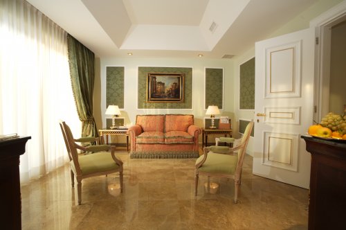 Estão à disposição 4 Suítes e 2 Júnior Suítes com uma sala encantadora, 2 TV em cores com canais via satélite com tela de cristal líquido, conexão a Internet, cofre, ar condicionado, banheiro em mármore com banheira, ducha e secador de cabelo.