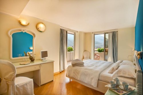The hotel has 97 guest rooms, all of which are elegantly decorated and equipped with a safety deposit box, a colour television, a balcony with a lovely panoramic view of the vineyards of Nago Torbole, a minibar, air conditioning and an en suite bathroom.