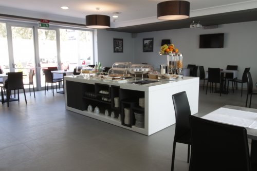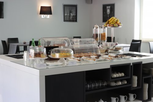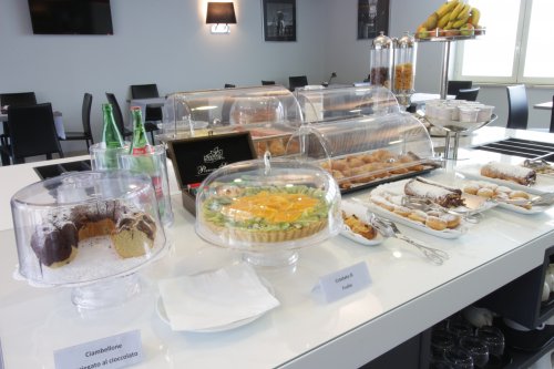 Una ricca colazione a buffet viene servita in una sala dedicata.