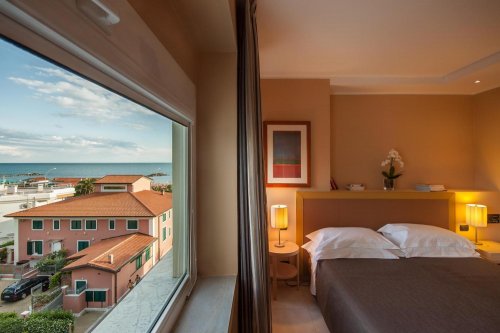 Voltado para o mar, a poucos passos da praia particular, o hotel é a escolha perfeita para agradáveis estadias de descanso perto do mar, a apenas 10 km dos Alpes Apuanos.