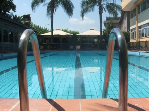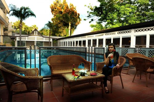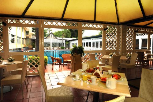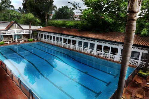 Circundado de um verdejante parque, conta com salas de reunião, piscina, restaurante, bar e serviço de transfer a pagamento.