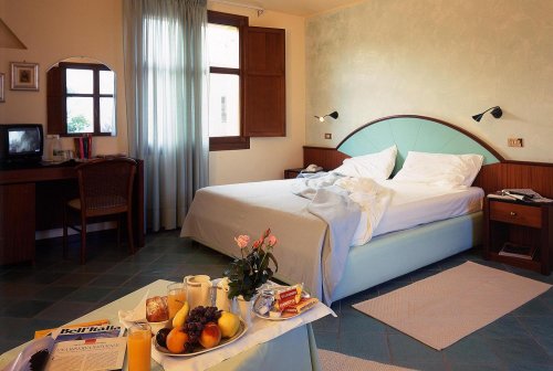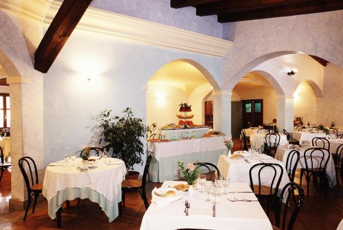 Duas salas-restaurante oferecem um abundante bufê de café da manhã e o jantar com serviço na mesa, com uma cozinha refinada e tradicional da Sardenha acompanhada de uma rica carta de vinhos.