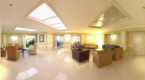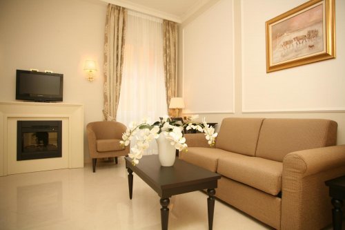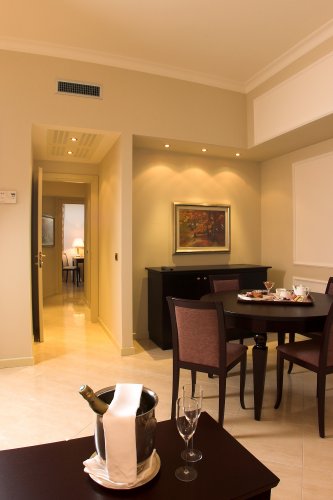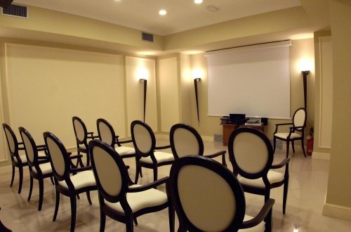 O hotel dispõe de apartamentos refinados, distribuídos em 4 andares, um confortável restaurante, sala de leitura e sala de cinema com tela gigante de parede, que podem ser preparados em ocasião de meetings e eventos congressuais.