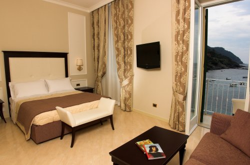 Do magnífico terraço panorâmico podem ser admiradas paisagens de tirar o fôlego e chegar à magnífica praia particular do hotel.