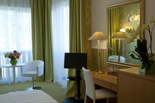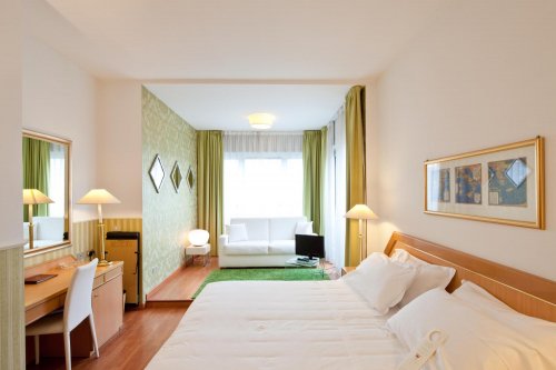 Os apartamentos de categoria Superior, espaçosos e bem iluminados, dispõem de climatização regulável dos próprios quartos, TV em cores satelitar, Sky TV, prancha de passar calças, minibar, cofre, tomada "rgb" para modem e conexão Wi-Fi a Internet.