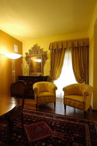 L'atmosfera di charme è sottolineata dai complementi di pregio e dai mobili di antiquariato sapientemente restaurati dagli artigiani delle maestranze locali.