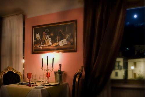 Le eleganti camere, affacciate sulle montagne circostanti o sulla piazza del paese, dispongono di mobili d'epoca e tende di seta, TV color LCD, servizi privati con set di cortesia.