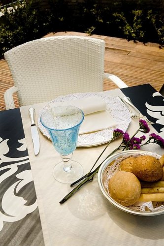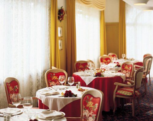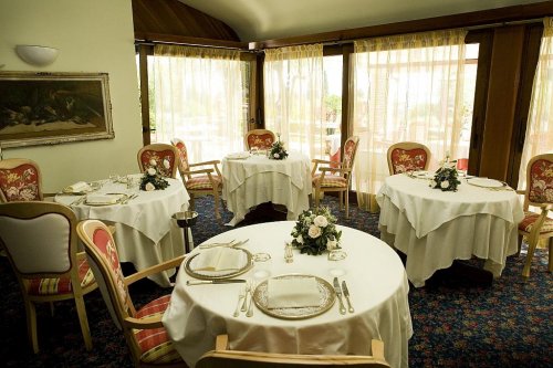 A infraestrutura dispõe de um aconchegante bar com terraço com vista para a piscina e de 2 salas-restaurante onde degustar pratos sofisticados em um ambiente elegante e exclusivo. De junho a setembro é possível almoçar à beira da piscina das 12:30 às 14:30h e acomodar-se para o jantar no romântico terraço com vista para o lago.