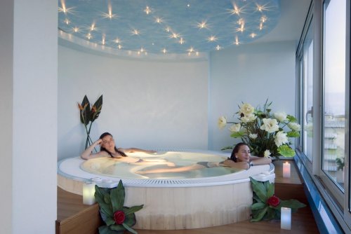 The new wellness centre has a sauna, biosauna, Turkish baths with music, light effects and tropical perfumes, a whirlpool bath, a Kneipp path and beneficial and relaxing massages.