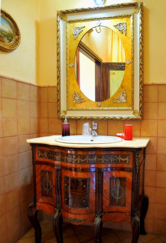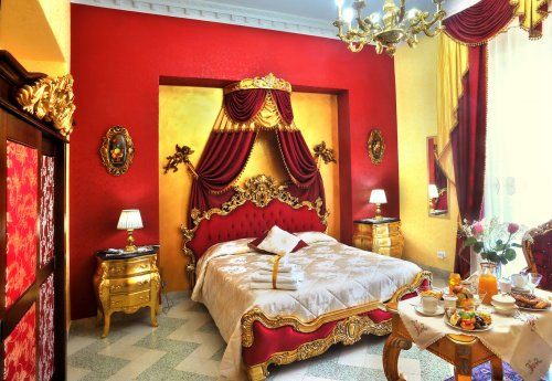 The rooms have been finished in a Baroque style and have been finely decorated with marble scale floors, all feature double beds with orthopaedic mattresses, wooden bed frames and leatherette padded headboards.