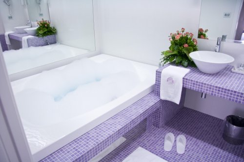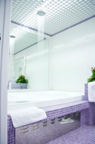 The Suite consists of a living room with a spacious terrace and a sleeping area, a bathroom with beautiful mosaics and a hot tub.