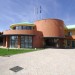 A arquitetura exterior, moderna e jovial, termina em uma cúpula de cristal que representa de certo o elemento que caracteriza toda a construção.