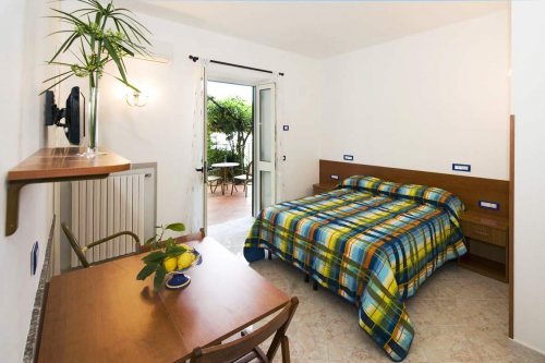 Gli ambienti sono completamente climatizzati e dotati connessione Wi-Fi gratuita a Internet. Le finestre si affacciano su un grazioso giardino con alberi di limone e offrono una vista incomparabile sul mare e sulla costa.