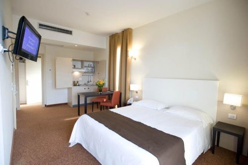 The hotel offers elegant rooms and apartments capable of sleeping from 2 to 5 people, a self service restaurant, a bar, a spacious garden, a large private car park and a garage for cars and motorbikes.