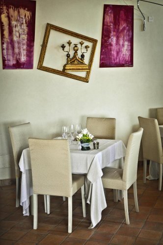 Il Ristorante del Relais offre un'atmosfera avvolgente e suggestiva, sottolineata dai pavimenti in cotto, i soffitti con volte e mattoni a vista, i lampadari in rame e le tovaglie dalle tonalità tenui.
