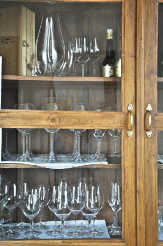 La sala si affaccia sulla corte interna e sulla piscina estiva. Durante la bella stagione è possibile accomodarsi anche presso il fresco dehors esterno.