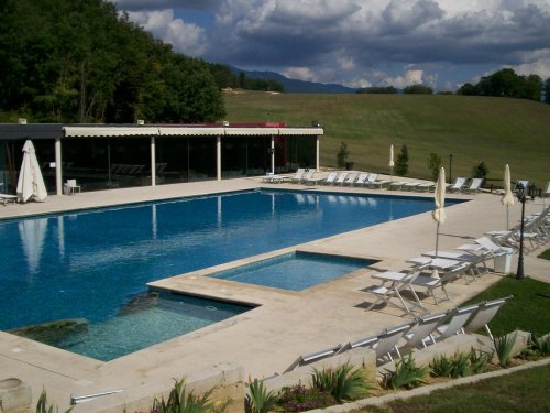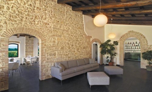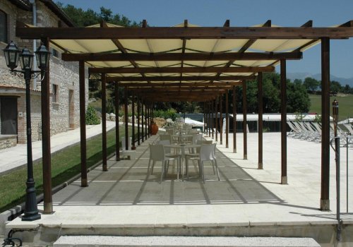 The Piscina restaurant can host up to 200 persons and offers an ideal setting for banquets and receptions. Constructed alongside the pool, it offers windows with striking views over the hamlet.