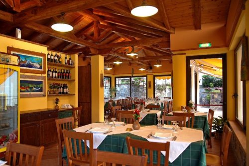 Il Ristorante dispone di ampie vetrate che offrono una visuale a 360° sulla verde vallata e le colline circostanti.