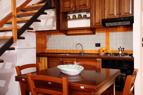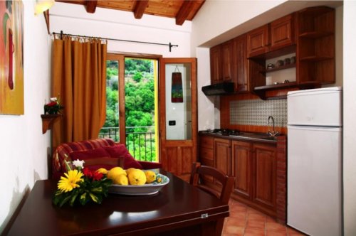 Il bilocale da 3 posti letto è un appartamento di circa 35 mq composto da cucina/soggiorno, camera da letto, bagno con doccia, bidet e WC, aria condizionata in tutte le camere, TV color satellitare, angolo cottura ben attrezzato (piano cottura 2-4 fuochi, frigorifero, pentole), spazio privato esterno in lastricato di pietra con mobili da terrazza o balconi panoramici. Su richiesta viene fornito gratuitamente il barbecue.