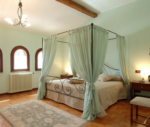 The luxurious “Suite della Torre” has an en-suite bathroom with a Jacuzzi and is perfect for a romantic stay with room service.