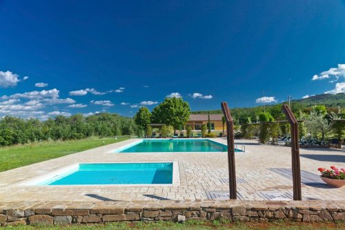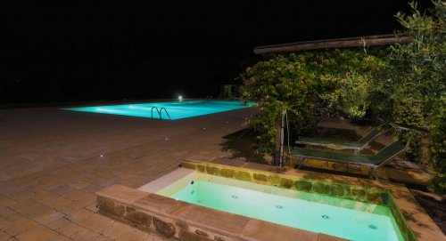 L'ampio parco accoglie una splendida piscina con vista mozzafiato, una piscina più piccola, una vasca idromassaggio e un Solarium per il relax durante i mesi più caldi.