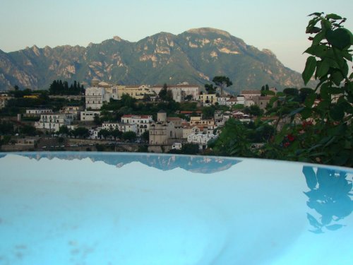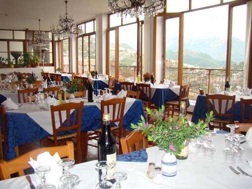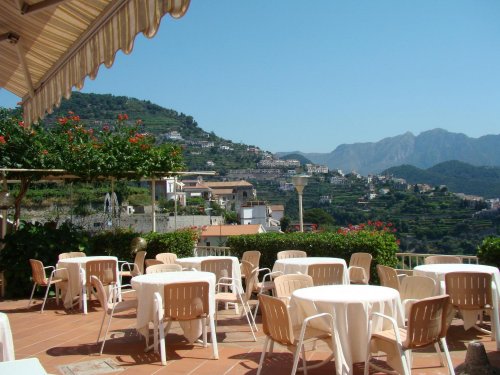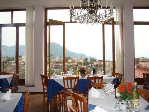 Из ресторана вместимостью до 150 человек открывается чудесный вид на Равелло и море.