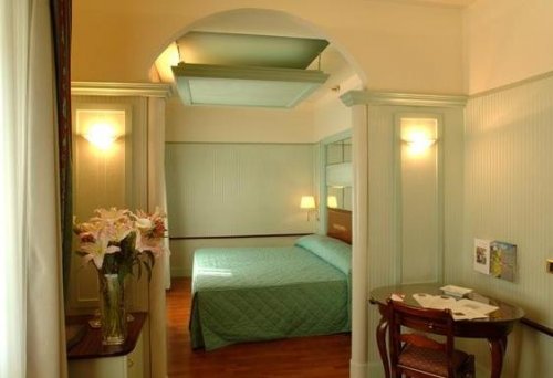 Номерной фонд отеля составляют 87 недавно отреставрированных, полностью звукоизолированных номеров. Номера элегантно обставлены и украшены фресками в классическом стиле, изображающими цветы и мифологических героев.
