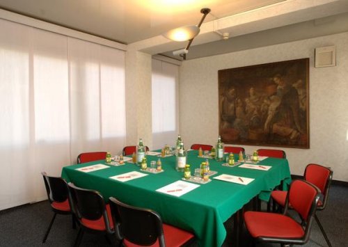 Из ресторана Sala delle Nuvole, расположенного на последнем этаже отеля, через большие окна открывается панорамный вид. Интерьеры отеля оформлены в классическом стиле.