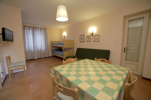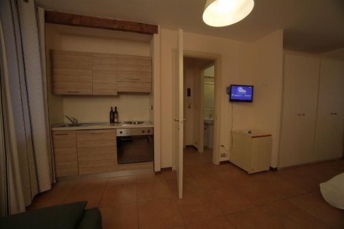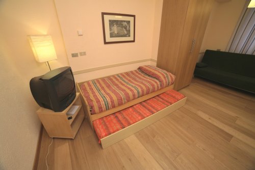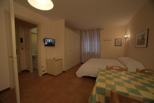 - Однокомнатные апартаменты, состоящие из одного помещения с мини-кухней, двуспальным диваном-кроватью (или двухъярусной кроватью) и односпальной кроватью, ванной комнаты.