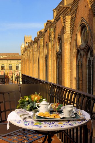 - Номера с террасой и изумительным видом на готические витражи базилики Сан-Петронио