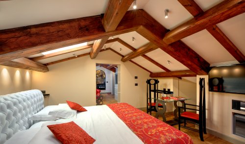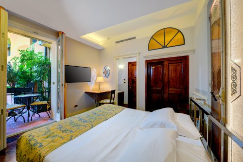 - Suite della Torre, состоящие из двух сообщающихся комнат (гостиной и спальни), расположенные в старинной башне здания, где частично сохранились фрески XIV века