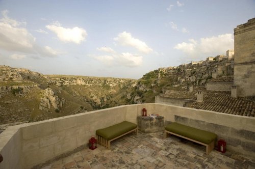 Доехав до Матеры, пройти до площади Piazza San Pietro Caveoso, рядом с которой находится отель Basiliani Hotel.