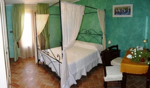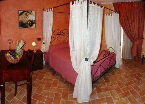 Le camere con ingresso indipendente si distinguono per i caratteristici pavimenti in cotto e i letti in ferro battuto.
