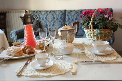 Завтрак сервируется в небольшом изысканном зале. По запросу предоставляется услуга обслуживания в номере.