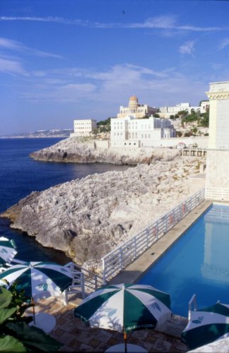 Il Grand Hotel Mediterraneo sorge a Santa Cesarea Terme, una ridente località situata tra Otranto e il capo di Leuca.