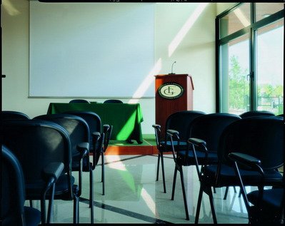 Зал оснащен для проведения в спокойной, изысканной обстановке больших и маленьких собраний, курсов, мероприятий по отбору персонала, банкетов, показов и выставок.