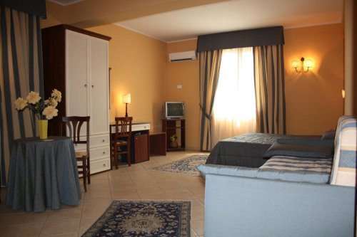 Le camere, modernamente arredate, sono dotate di TV color, connessione Wi-Fi a Internet, telefono con linea diretta, aria condizionata/riscaldamento, frigobar, bagno privato con doccia e asciugacapelli.