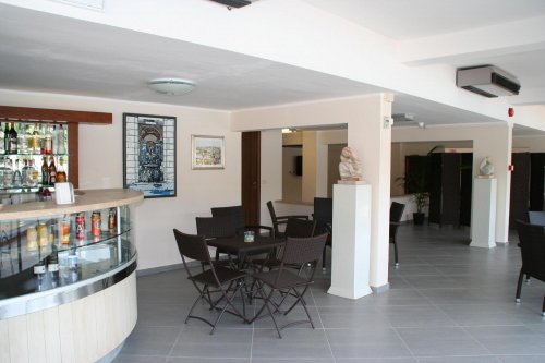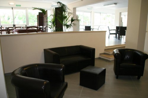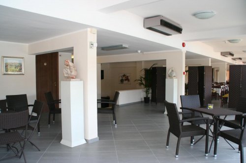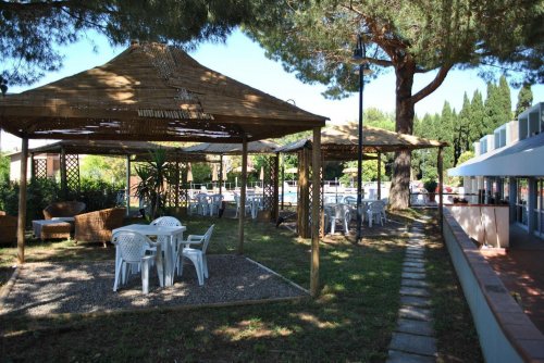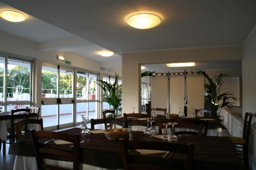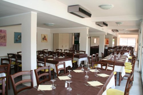 Отель располагает большим рестораном-пиццерией: гости могут расположиться как в зале, так и на открытом воздухе – в парке рядом с бассейном.
